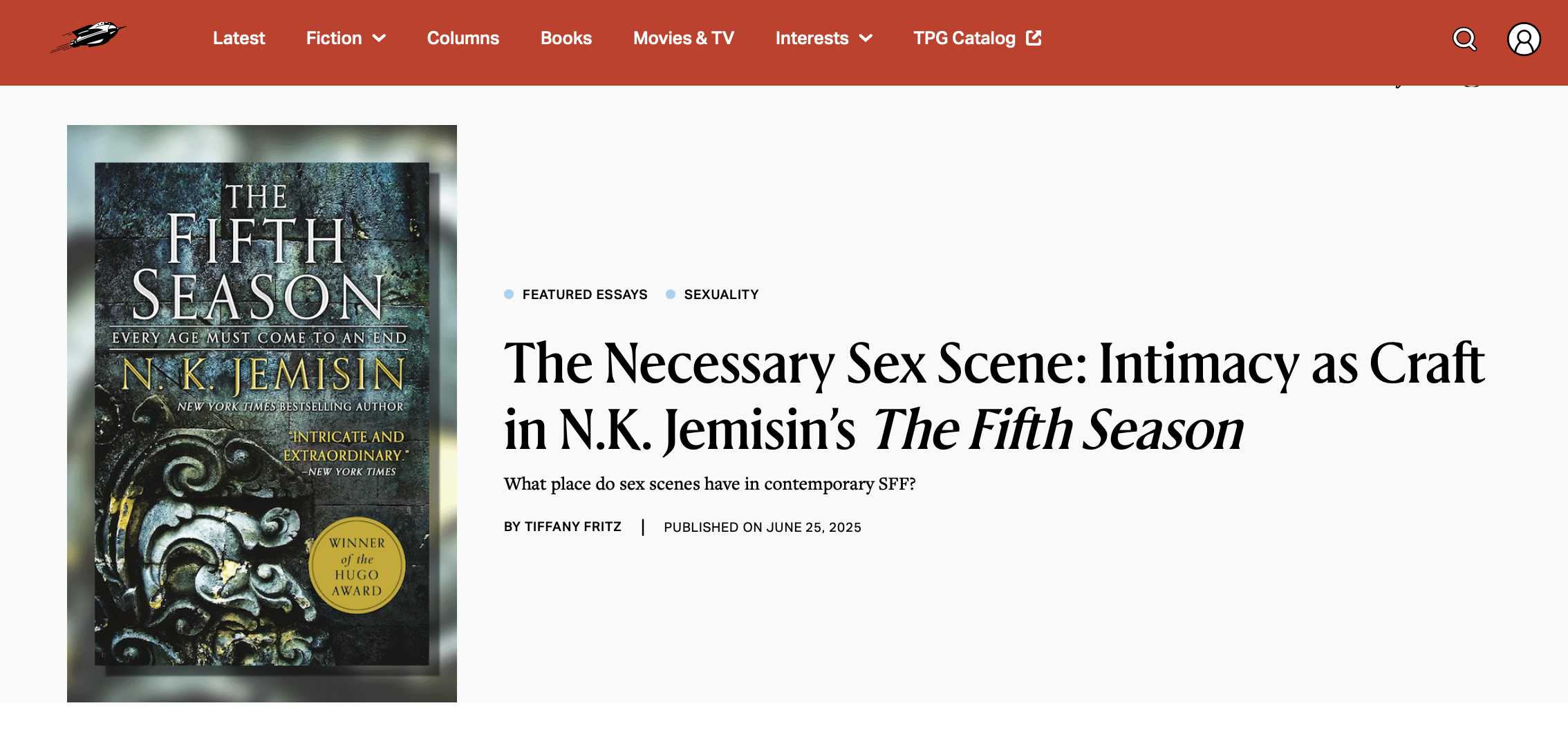 The Necessary Sex Scene: Intimacy as Craft in N.K. Jemisin's The Fifth Season by Tiffany Fritz